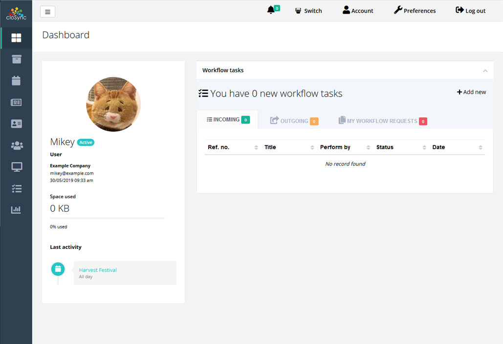 Collaborate with your teams easily and securely, using access permissions to set access levels. cloSync allows people in multiple locations to collaborate on a single document, with all modifications to the document tracked and backups of previous document versions kept. Online previews are also available for viewing without requiring download of the document.